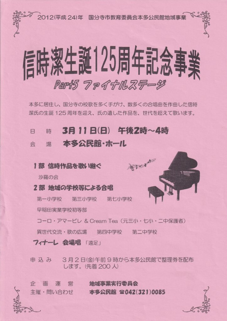 信時潔生誕125周年記念事業 本多公民館地域事業