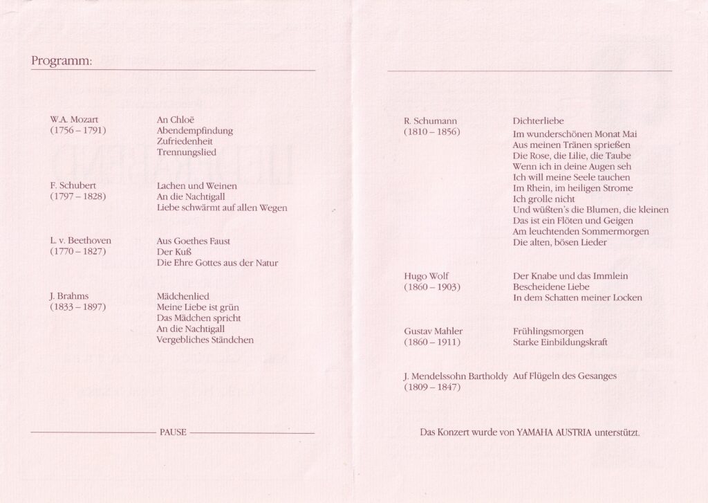プログラム:夜・明日・僕の思いのすべて・私の心の小さな王冠であるあなた/リヒャルト・シュトラウス