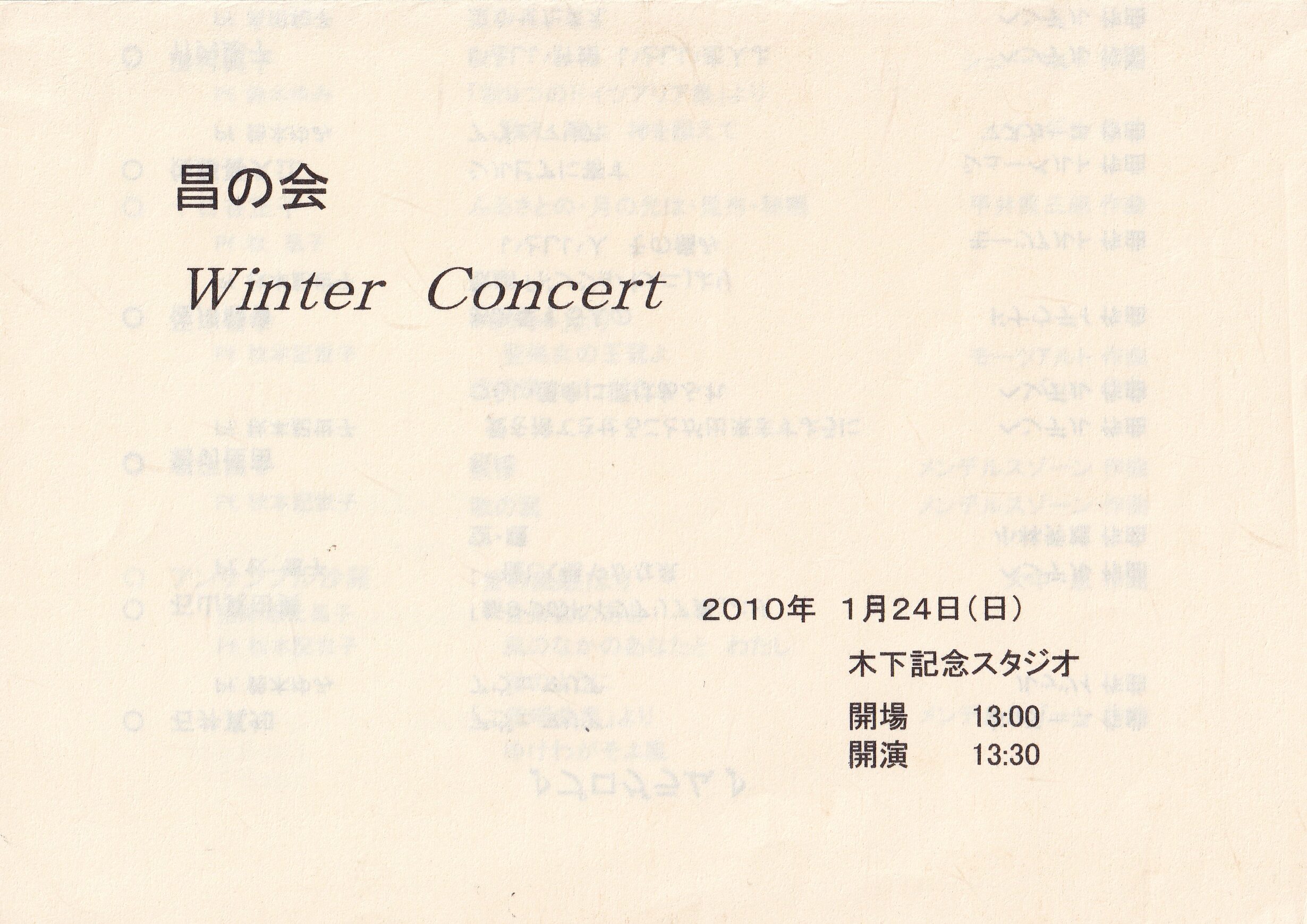 プログラム:くるみの木/シューマン 月/メンデルスゾーン 母 /小松耕輔 かやの木山/山田耕筰