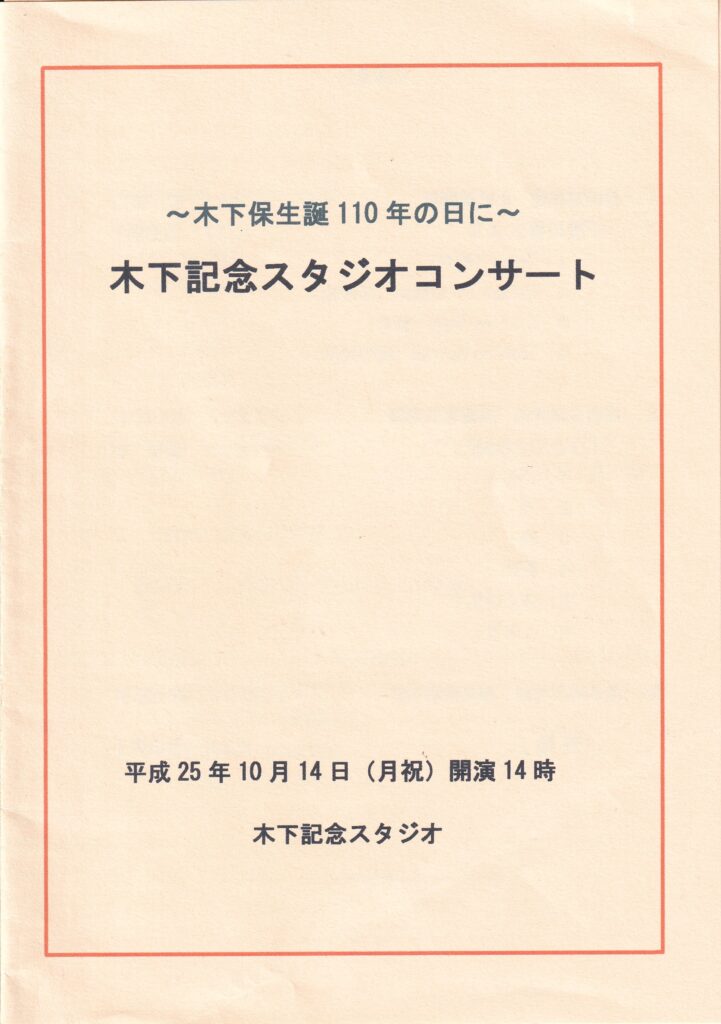 ~木下保生誕110年の日に~ 木下記念スタジオコンサート