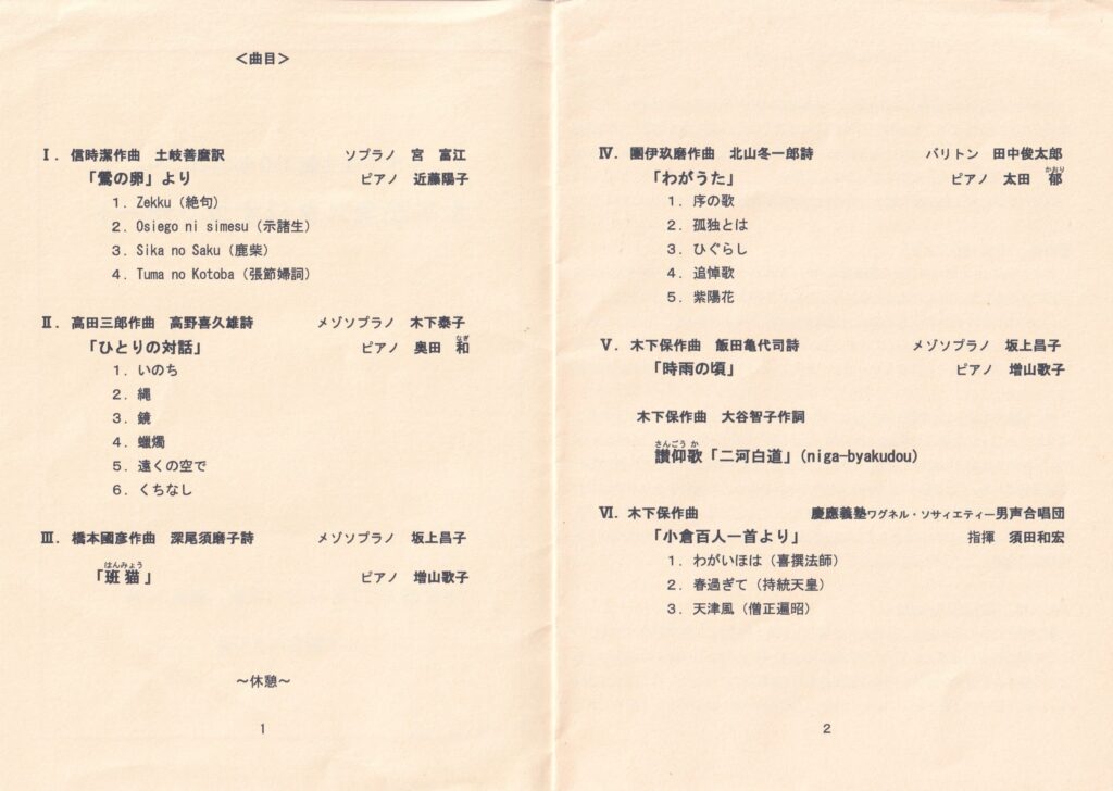 プログラム:平城山・甲斐の峡・九十九里浜/平井康三郎 pf.:石井里乃